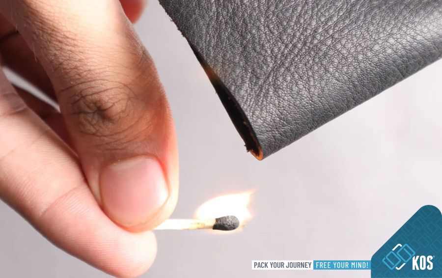 Da thật: Cháy xém và có mùi khét như tóc cháy. Do được cấu tạo từ protein, da thật sẽ bị cháy xém khi gặp lửa và có mùi khét giống như tóc cháy.